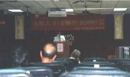 八点三十分首先由来宾玉井国小王锦成校长致词,由于我们的大法弟子是刚从玉井国小退休的老师,在校时曾经向王校长洪法,所以王校长也了解法轮功是气功更高层的修炼,很支持法轮大法的洪传。
