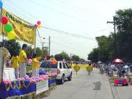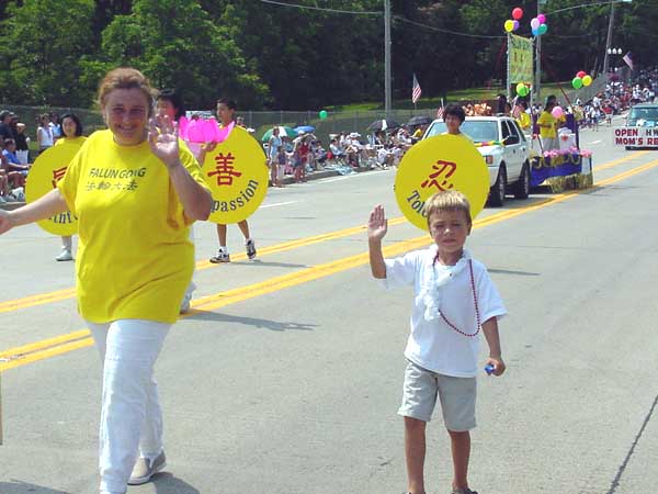 【明慧网2002年7月6日】7月4日是美国的国庆节,我们应邀来到圣路易西部的城市O’FALLON,参加当地的国庆节游行庆祝活动。O’FALLON是一个白人集中的新兴城市,距离圣路易40英里。