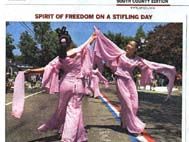 ◇为了纪念2002年日韩世界杯足球赛,由世界信徒联盟等主办的“第一次世界基督徒和平大会”将于6月29日在日本东京举行。在这之前,6月22日,在东京的日比谷公园小音乐堂举行了一次“世界和平慈善祷念音乐会”,作为它的准备会。法轮功学员应邀参加了这次音乐会的演出。法轮功学员表演了“法轮大法好”,“法正乾坤”等歌舞,并展示了法轮功的五套功法。