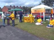 不少当地居民纷纷来到展台旁,索取真相传单并询问炼功点,表达了愿意学炼法轮功的愿望。