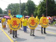 【明慧网2002年7月9日】七月四日,亚特兰大地区约四十名大法弟子参加了玛丽埃塔一年一度的国庆游行,向数万名观众展现了法轮大法祥和美好的风采。