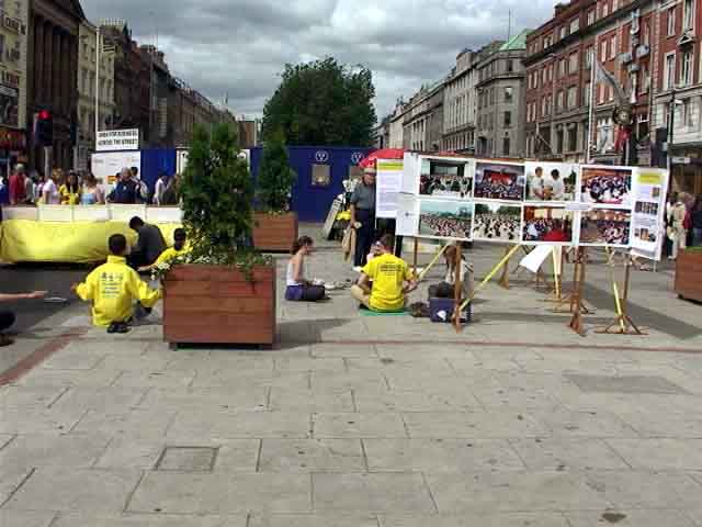 我们的图片吸引了许多人前来观看。 邮政总局也是居住在都柏林的中国人经常聚集的地方,每周在这里我们向他们发放大量的真相光碟和真相材料。我们的图片展开始后不久,一个从大陆来爱尔兰刚三天的女孩在看完我们的图片,并听学员讲真相后非常感动。她对江泽民流氓集团对善良的法轮功学员如此残酷地迫害表示出极大的愤慨,对法轮功学员们的不幸遭遇非常同情;同时,也对大法弟子们为坚持真理而不畏艰险的巨大勇气敬佩不已。她临走时真诚地对我们说:希望你们继续努力,祝你们好运!
