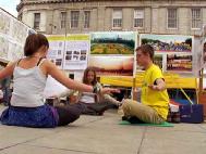 【明慧网2002年8月12日】今天都柏林迎来了一个风和日丽的周末,住在都柏林的大法弟子搞了一次别开生面的室外“正法之路图片展”。