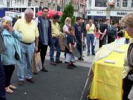 一大早,学员们经过一番准备,在我们每个周末弘法的都柏林邮政总局前面,一个小型的“正法之路”图片展开始了。