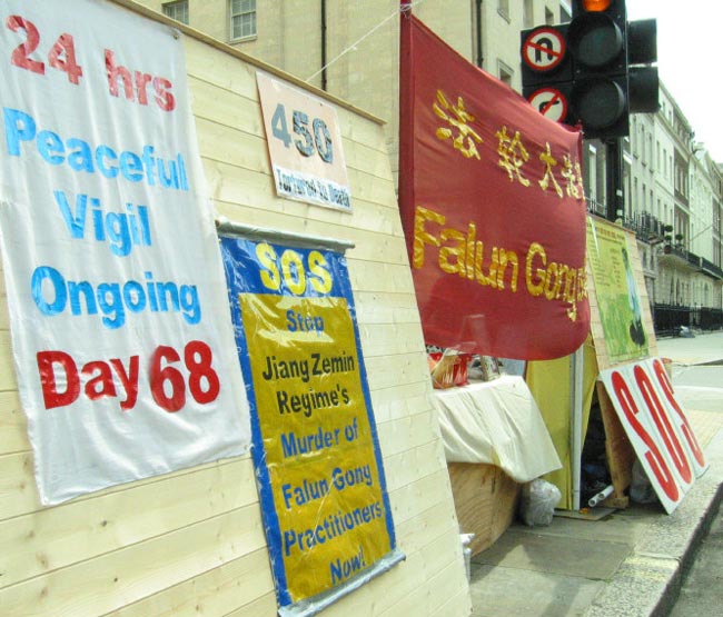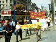 【明慧网2002年8月13日】英国弟子在伦敦大使馆及英国外交部门前的和平请愿已经进行数日了。今天(8月11日)是星期天,来自全国各地的弟子们再聚伦敦游行,和平抗议江氏集团对法轮功的镇压已延伸至香港。