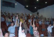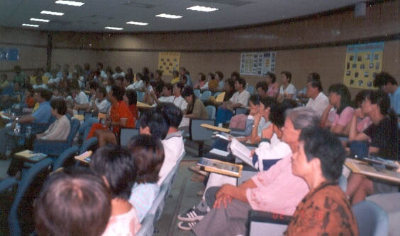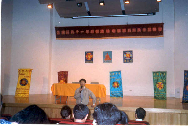 第二天下午播放李老师在广州的讲法影带,很意外的,王督学又出现在会场聆听,真是不放弃每一次听法的机会。第二天研习尚未开始时,来了一位贵宾,现任立法委员郭添财立委早就到会场向陆续前来报到的教师们致意。郭立委曾经担任过彰化县教育局长,他也是台湾第一位批准教师法轮功研习的教育局长,因为他当时就相信法轮功是好的,可以让教师们身、心、灵达到最佳的状态,所以他就赞同办理法轮功教师研习。郭立委致词时,肯定法轮功对人们身体健康的效果及社会人心道德的提升,希望教师们参加研习之后,身心更加健康,每天可以心情愉悦地上班、上课,有了健康的身体,才有更大的耐心帮助学生解惑,学生才能在学习上有更大的收获。郭立委说他也要利用时间来看《转法轮》,并学炼五套功法。