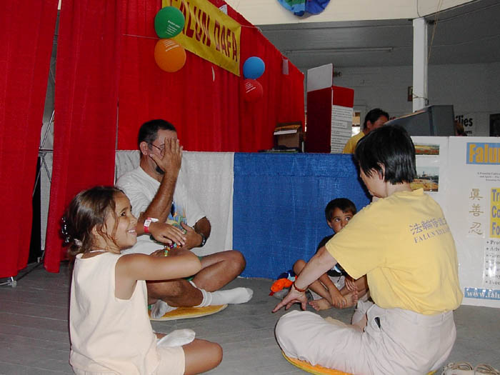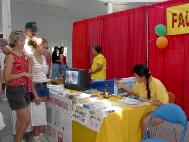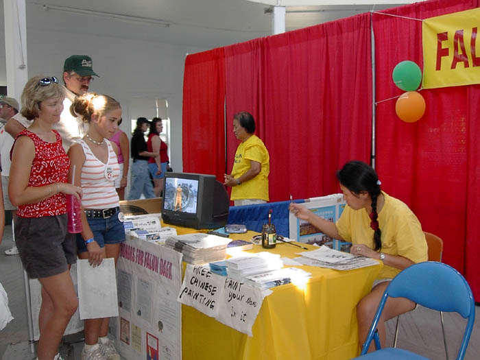 【明慧网2002年8月14日】一年一度的纽约州西北部的伊利县集贸会具有悠久的历史,规模很大,游人逾十万,在全国类似的集贸会中位列前茅。当地的法轮功学员再度参加了今年的集贸会,利用这大好时机向美国人民介绍法轮大法,并讲清在中国大陆发生的迫害法轮功学员的真相。