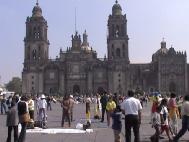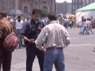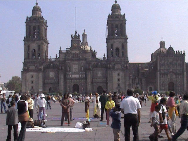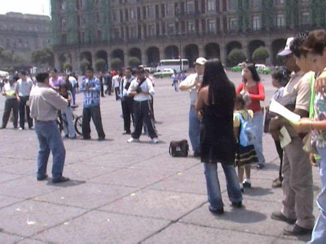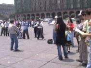 【明慧网2002年8月14日】8月10日,首次墨西哥法轮大法修炼心得交流会在墨西哥城召开。次日是星期天,与会的部分台湾、美国休斯顿、加拿大和当地学员再次来到著名的Zocalo广场弘法。Zocalo广场是中美洲最大的广场,每天游客人山人海。这天正好是印第安人祭天仪式,更是观者如潮。我们在广场中央铺开了西班牙语“紧急救援中国被迫害的法轮功学员”和“法轮大法”的横幅并开始炼功。立刻就有很多人围上来观看。绝大多数都接过传单并表示感谢,很多人当场学习五套功法。连孩子都认真地跟着学。短短的几小时,数千份洪法传单就发出去了,连全副武装的巡逻警察都接过传单读起来。最后我们带来的几箱传单都发完了,人们还恋恋不舍地在一旁不肯离去。我们深深感受到了墨西哥人民对大法的渴望和当地学员所做的大量的弘法工作。