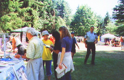 许多人来到我们的展台,索取资料,倾听我们学员的介绍,并在我们“呼吁加拿大政府出面阻止香港对法轮功学员的无理审判”的提案上签名,大半天的时间,就征集了近300多个签名。许多人主动说,我知道法轮功,我看到你们在中领馆前的近一年的24小时的静坐,我知道中国对法轮功的迫害。但是,也有很多人不明白,中国为什么要镇压这么一个和平的群体?在我们学员讲真相后,好多人明白了。