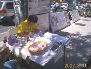 西人法轮功学员自制展板 在中国城讲真相(图)