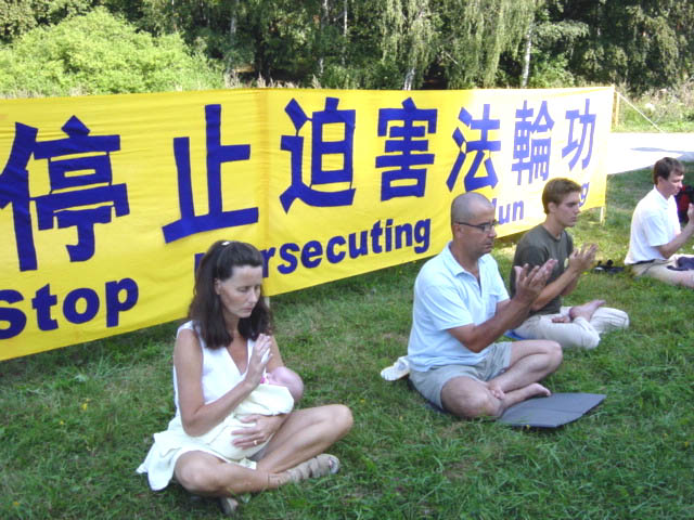 【明慧网2002年8月17日】2002年8月16日,瑞典斯德哥尔摩部分法轮功学员继续在中国大使馆前抗议。我们对香港政府屈服于江泽民集团的高压而对16名法轮功学员颠倒是非的判决感到愤怒,我们将继续呼吁瑞典政府及国际社会各界关注此案,直至还香港法轮功学员清白。