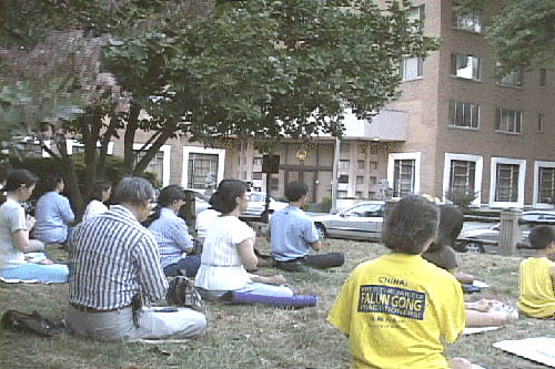 【明慧网2002年8月17日】8月15日凌晨,华府大法弟子得悉香港法院颠倒是非的判决,感到十分震惊。当天傍晚大家再次来到中国大使馆前静坐,和平抗议江泽民一伙对大陆法轮功学员的迫害以及对香港自由的践踏。