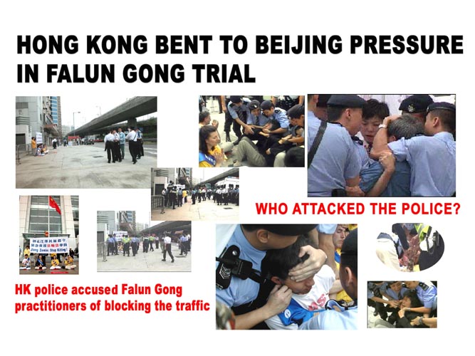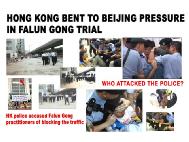 后记:港警以“阻街”为名拘捕16名法轮功学员后,在同一地点,却挖开路面,又设置路障。特区政府随后在中联办外、法轮功学员每日举行抗议的地方竖起了木制栅栏。