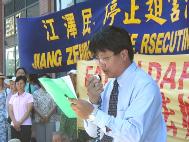 7月31日午12时15分,数十名大纽约地区的法轮功学员聚集在纽约总领馆前就香港警方检控和平请愿的法轮功学员一事举行新闻发布会,对香港能否保持其自由社会的特色从而保证其繁荣的经济文化表示深切的关注与担忧,