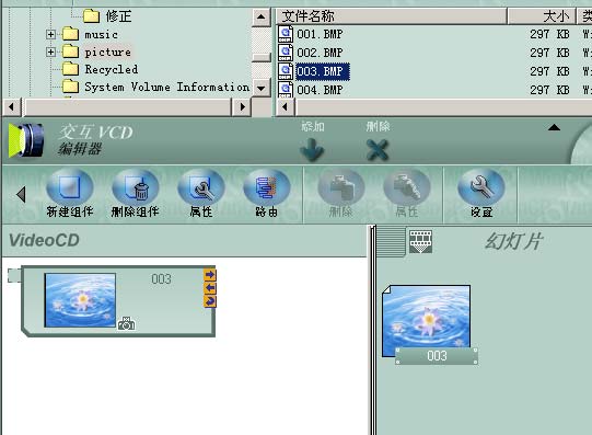 运行WinONcd 5 后选择“交互VCD”。选取一幅图片作为选择界面的背景,添加到“Video CD”中。