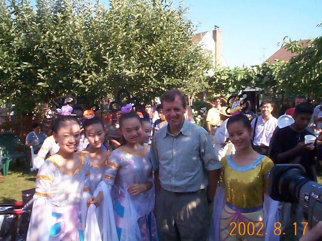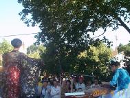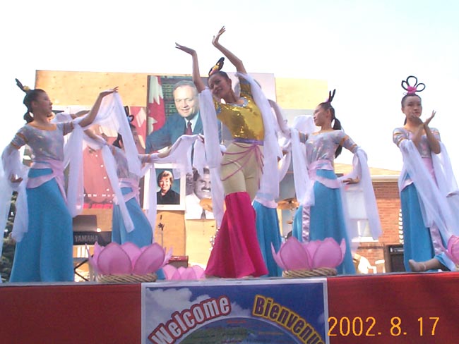 野餐会是在由四家人的后院连起的一块空地里举行的,自然、轻松和随意。活动一开始,库伦先生就向大家宣布,由法轮功学员组成的光明艺术团应邀前来表演,随着“普度”悠扬的乐曲,学员们在台上翩翩起舞,这是由六位小弟子表演的舞蹈,美丽的衣裙在夏日的和风中款款而动,她们的表演如同她们手中的莲花一样纯净、祥和,众多与会者都从四周走来,脸上透着惊喜。接下来,十四岁的小弟子表演的古筝独奏,独舞“一支花”,和剑舞表演个个精彩纷呈。最后学员们表演乐舞“美丽的唐代”,表现的是一群唐代女子的生活小片断,报幕的学员告诉大家,在唐代最鼎盛的时期,举国上下都重德向善,女性在劳作之余,更要注重在琴棋书画方面的内涵修养,那样的美来自内在。学员们的精彩表演获得了阵阵热烈的掌声,很多人说,到今天才知道,原来中国历史上有这样美丽的服装,这样美好的文化。