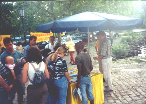 波士顿中国城的“中华公所”在8月18日举办中秋联欢,先我们一步拿下了小公园的许可证,在领事馆的压力下,不许我们在摊位上炼功。学员正念破除干扰,并向各界人士讲清真相,使在中秋联欢会上的洪法活动圆满进行。