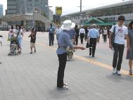 图片展的第三天,中国大使馆有人来到了会场,他们在会场内外转了一圈,假装参观,偷偷拍学员的照片,当学员举起照相机要照下他们的行为时,他们很快就溜走了。