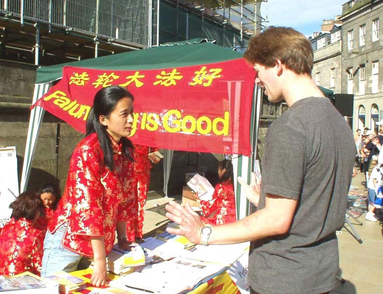 近两日,正值爱丁堡国际艺术节,往常天气倏变的古城爱丁堡突然变得格外的晴朗。为了能让更多的世界人民领略大法的美好,英国大法弟子从8月20日开始举办“法轮大法展示演出周”,今年的全英法会也将在此举行。大法弟子的演出俨然成了艺术节人见人爱的明星节目。在明丽的阳光下,在川流不息的人群中,大法弟子身着红黄相间的传统服装,处处都显得熠熠生辉,总是最引人注目。