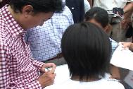 巧合的是,在学员进行签名活动的时候,日本最大的在野党――民主党党首,鸠山由纪夫及另一位国会议员正好在奈良进行助选活动,他与学员交谈后欣然在签名簿上签上了自己的名字,随后另一位国会议员也主动给我们签了名。