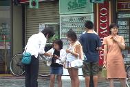来自日本大阪、京都、神户、广岛的法轮功学员顶着酷暑,向过往的行人讲着真相,征集大家的签名,呼吁日本政府帮助营救金子容子女士。善良的奈良及其他地区的日本人民不论男女老少都非常热情地签名,有的人特意从摩托车上下来给我们签名,有时排着队要签名,学员都忙个不停,同时感到众生都有善的一面,都有明白的一面,他们都等着我们向他们讲清真相、介绍大法。