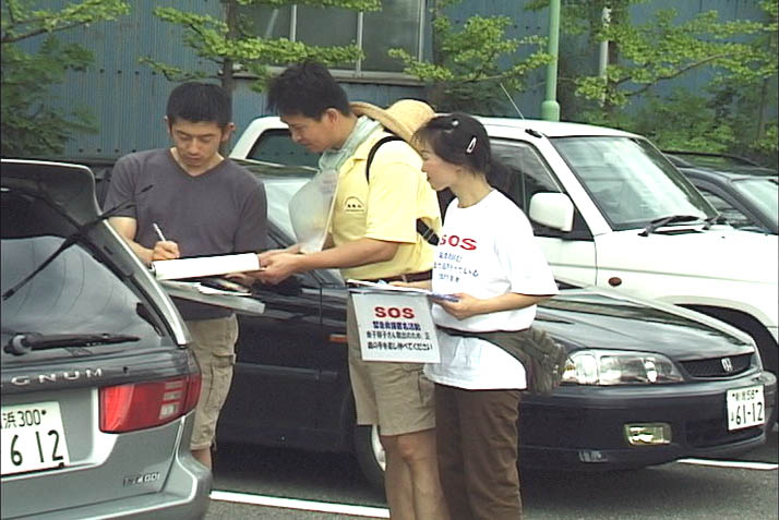 当地学员和家人来到市政府门前为车队成员送行,这一动人的话别场面引起游客和行人的极大兴趣。人们纷纷前来索要SOS传单,了解真相,在签名表上留下地址姓名,支持学员的行动。满载着各界的支持和鼓励,SOS车队踏上了讲清真相的旅途。