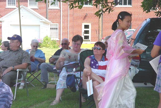 ◆2001年秋,我们在公园附近派发真相资料,碰到一个南美女孩。下雨了,人们都去躲雨,我们就坐下发正念,突然那个南美女孩又出现了,流着泪给我们拍照。十几分钟后,雨停了,屋檐下的人们也变了,以完全不同的态度接受真相资料。