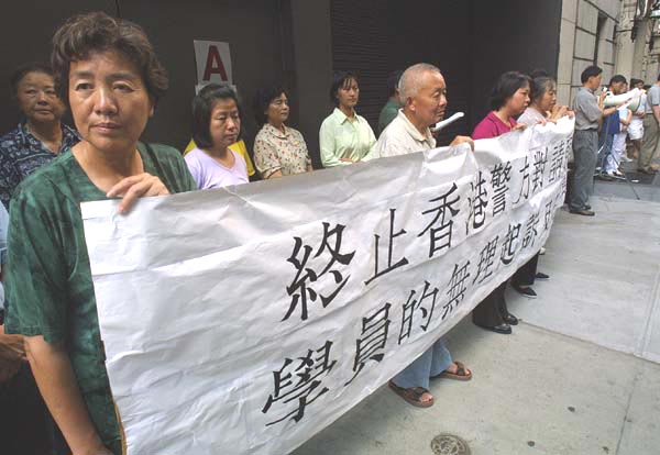 【明慧网2002年8月7日】八月五日午四时至六时,来自大纽约地区的部分法轮功学员在香港驻纽约经济贸易办事处就香港警察对十六名法轮功学员进行诬告一事举行了和平请愿。