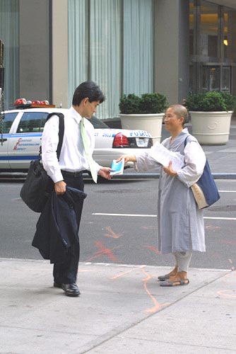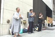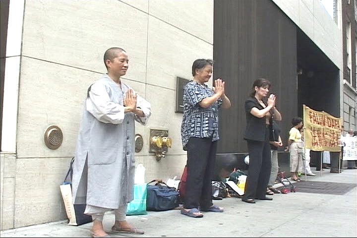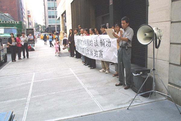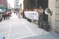 纽约法轮功学员在香港驻纽约经贸办事处和平请愿(图)