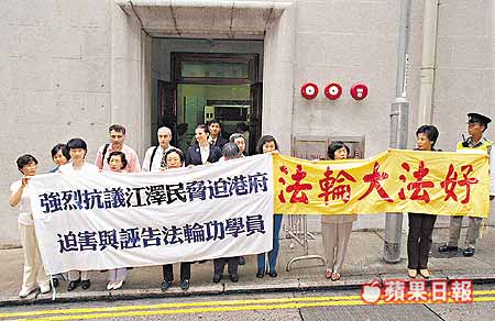 三月十四日,四名来自瑞士法轮功学员和十二名本港学员在西环中联办门外静坐请愿,抗议国家主席江泽民下令镇压法轮功,被警方拘捕控以阻街、阻差办公及袭警等罪名,该案数周前在西区裁判法院开始聆讯,控方律师昨结案陈词。