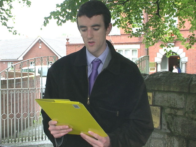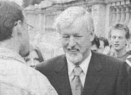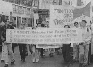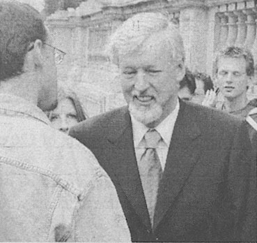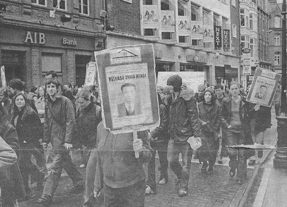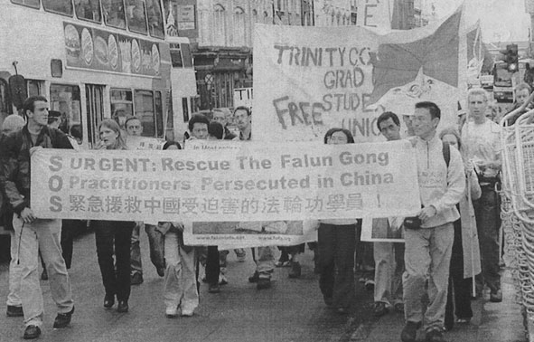| 2001年都柏林三圣学院学生为呼吁释放赵明在都柏林市中心举行游行 | 三圣学院校长John Hegarty教授参加呼吁释放赵明的集会 | |