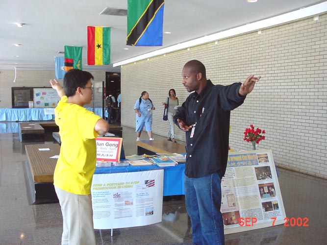 在整个比赛期间,印第安纳州的学员们利用理智、智慧和慈悲,抓住一切机会向海外的华人、国内来的记者和球员展示大法弟子们的风貌和法轮大法在海外洪传的盛况。他们相信,无论江氏集团如何造谣、封锁,记者和球员们将会把他们看到的一切传给可贵的中国人民。