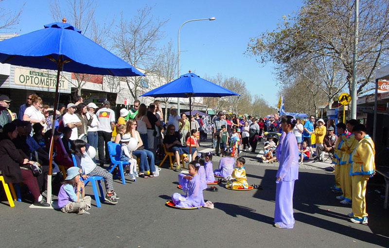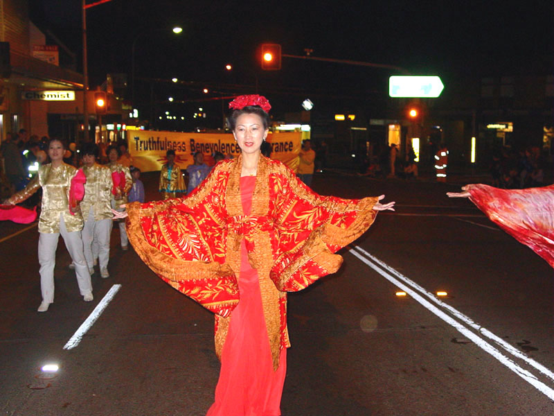 白天阳光灿烂,没有一丝云彩,有近50个团队参加圣玛丽市春庆节游行。晚上,初秋的天气有点凉意了,近千人参与了Castle Hill市第33届菊花节庆祝活动。无论是在烈日当头的中午还是寒气袭人的晚上,大法弟子的队伍在众多的游行团队中表现出色。