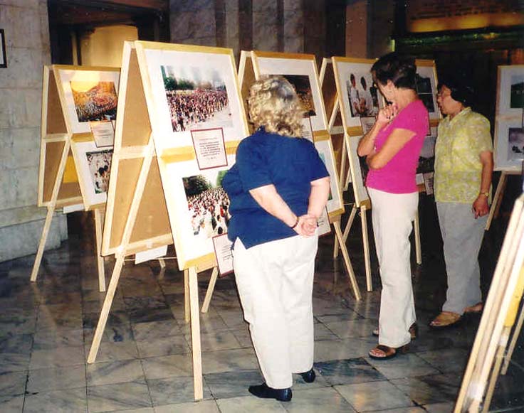 四天的展览吸引了市政厅的工作人员和游客们驻足观看。他们看到了99年7.20以前法轮大法在中国弘传的盛况,也因此了解了什么是法轮大法,同时他们又感到非常震惊:在二十一世纪的今天,在遥远的中国,善良的百姓只因为要修炼,要追求真善忍的境界,竟受到残酷迫害。一位先生说他一直在关注着法轮功事件的进展,并说我们做得很好。有人当场就表示很感兴趣,要求学功。