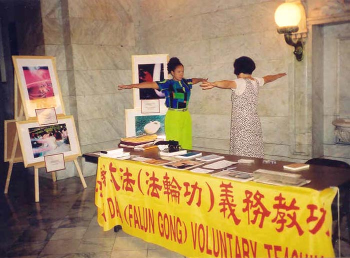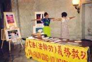 为了展览顺利举行和及时讲清真相,本地学员们除搬运摆放图片外,也轮班在现场为参观者解说和教功等等。大家辛苦付出的心愿就是要让更多世人了解法轮大法的真相,使这个世界更美好。就在接下来的星期天,一位市政厅官员来到当地炼功点开始学炼法轮功。