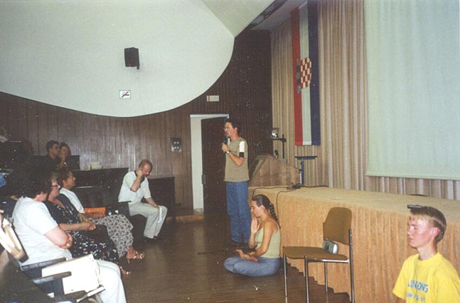 功法表演结束之后的休息时间里,很多人来找我们,反应很好。有的人问我们到哪儿能学功,一位女士兴奋地告诉我们,我们一开始炼功能量场就改变了。