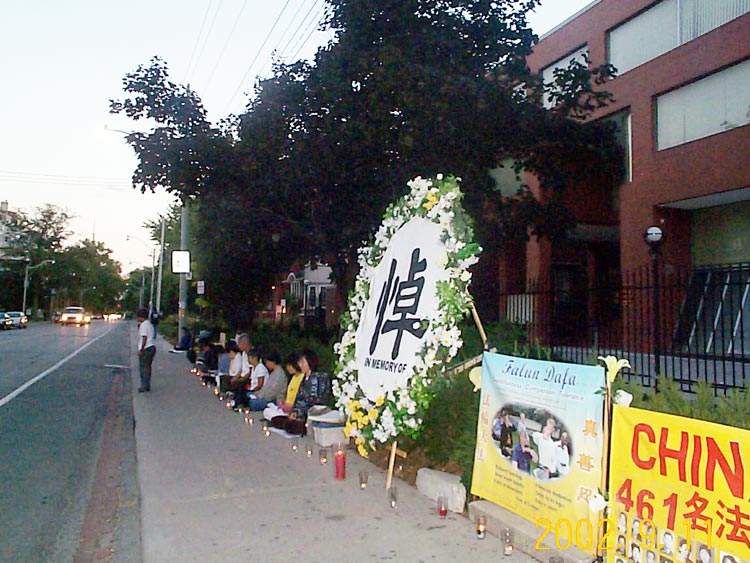 9月14日晚,王潺的朋友在中国驻多伦多领事馆前为王潺举行烛光悼念活动,并计划给加拿大总理和外交部长写信,呼吁他们帮助制止江XX集团对法轮功的残酷镇压。