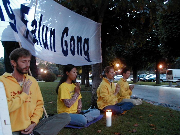 9月20日晚,中国国务院总理朱镕基到奥地利总理府赴宴,奥地利法轮功学员于总理府前举行烛光守夜,悼念在江氏集团对法轮功的迫害中失去生命的修炼者,呼吁停止在中国对法轮功的迫害。