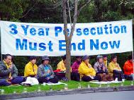 澳洲墨尔本学员在中领馆门前36小时发正念