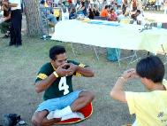 【明慧网2002年9月27日】2002年9月22日,汉城汉江市民公园人山人海,四万余名在韩的中国朝鲜族正在举行第四次中秋节大联欢。上午9时起汝矣岛地铁口已成为人的洪流,在地铁口与汉江市民公园通道上数幅红底黄字的“法轮大法好!”的横幅分外耀眼。汉城的法轮大法弟子忙着发放真相传单、VCD给这些朝鲜族华人。