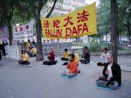 9月27日傍晚,一些法国法轮功学员陆续来到市中心,炼功、发正念、讲真相。