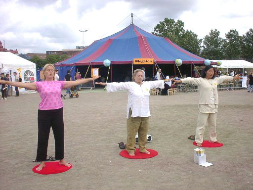 高峰会议上的法轮功讲座一位参观者说:“走近法轮功,我感到祥和。”