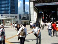 | 在电车上向乘客讲真相 | 在会议中心前分发大法报纸 |