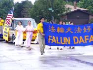 2002年九月二日,美国芝加哥地区的学员参加了娜泊维市(Naperville)的劳动节大游行。娜泊维市是芝加哥附近的一个城市,拥有13万人口,也是华人聚居最多的地方,也是邪恶干扰破坏最厉害的地方。经过娜泊维市学员们的共同努力,我们破除了邪恶的破坏,获得了发大法材料的许可。
