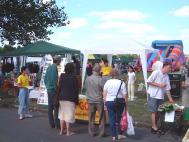 会场上人群川流不息,灿烂的阳光照射在法轮大法展位上,许多人停下脚步观看功法演示。参加演示的有中西裔大法弟子,其中一位小大法弟子纯真稚气的神态吸引着一些人饶有兴致地观看。许多人询问当地哪里有教功班。一位男士迫不及待地当场学功,另一位女士也马上加入。后来这位学功的男士询问在哪里可以买到《转法轮》这本书,教功的大法弟子为他的缘分和悟性所触动,于是慨然把自己的那本书送给了他,令这位男士感动不已。几分钟之后,一位大法弟子到食品摊位去给那位教功大法弟子买茶水,她顺手递给售货员一张传单,售货员幽默地说:“这是一个很好的交换。”然后友好地拒收茶费。这杯“交换”来的茶水慰劳了那位教功送书的大法弟子。一切都是那样的祥和,友善,真挚。