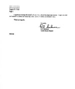 就国会所采取的行动,我想确认您已了解到,众议院最近通过了第188号决议案。这一议案表达了国会要求中国政府应立即停止对法轮功学员的迫害的意愿,现已呈送参议院外交委员会,我也是这一委员会的成员之一。这一决议鼓励美国政府在一切适当的场合敦促中国政府释放被拘禁的法轮功学员,停止对所有的良心犯进行残酷的,非人道的虐待,并允许法轮功学员追求自己的信仰。此外,这一立法呼吁美国政府调查中国(江XX)政府对在美法轮功学员进行非法骚扰的行为。您放心,如果负责制定委员会议程的参议院外交委员会主席同意在第107次国会上讨论这一立法的话,我会参考您的建议。