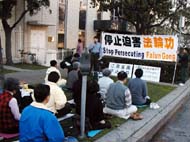 为悼念那些在国内被迫害致死的学员,当地法轮功学员自1月12日至1月14日连续三个晚上在中领馆前举行烛光守夜活动。