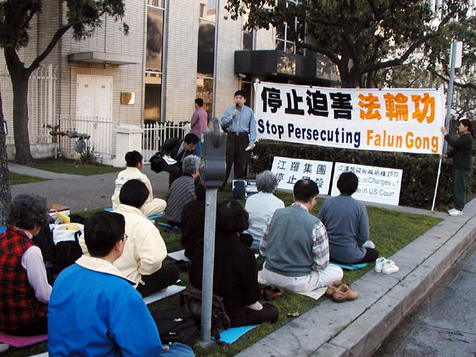 洛杉矶法轮功学员集会谴责江泽民及其610办公室系统的疯狂虐杀(图)
