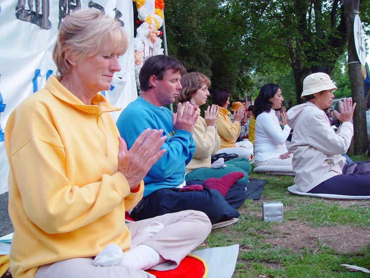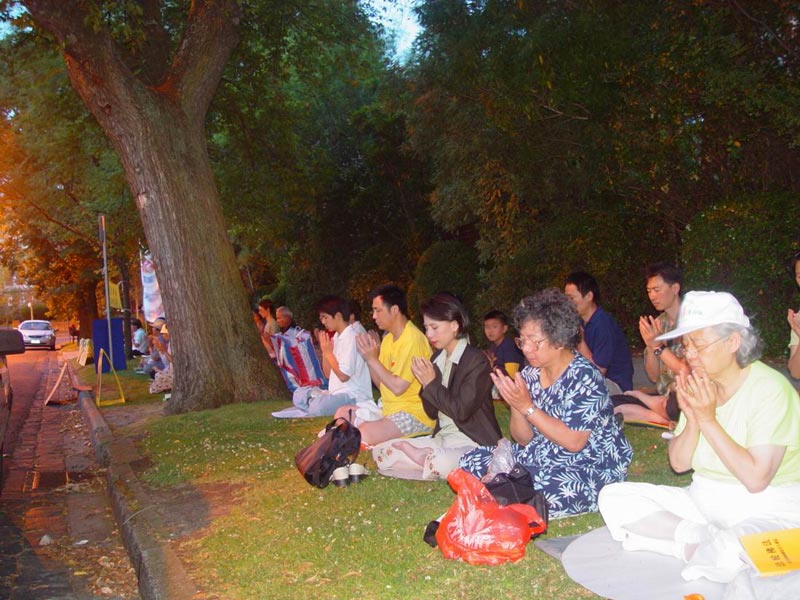 俄罗斯学员在中使馆前发正念,呼吁制止虐杀!(图)