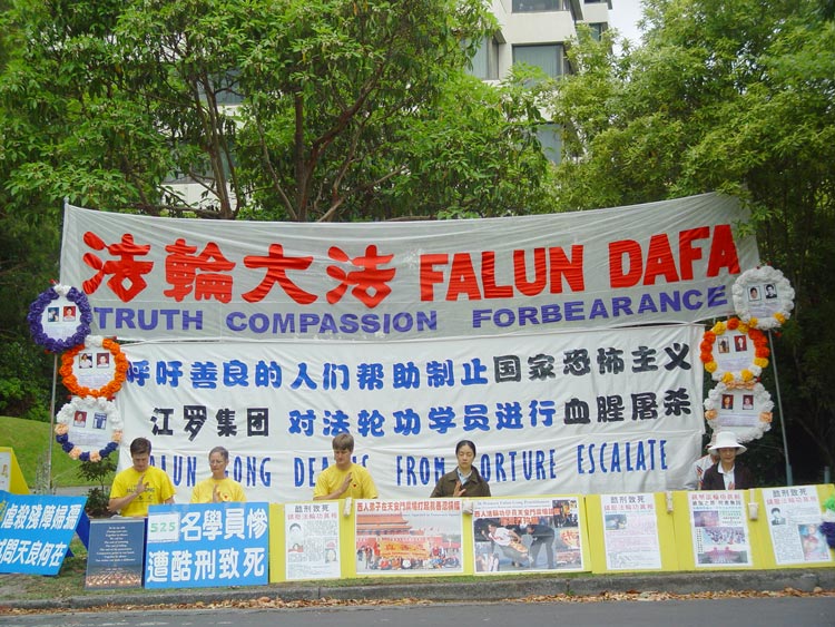 图片报道:澳洲墨尔本法轮功学员中领馆前抗议江氏暴行